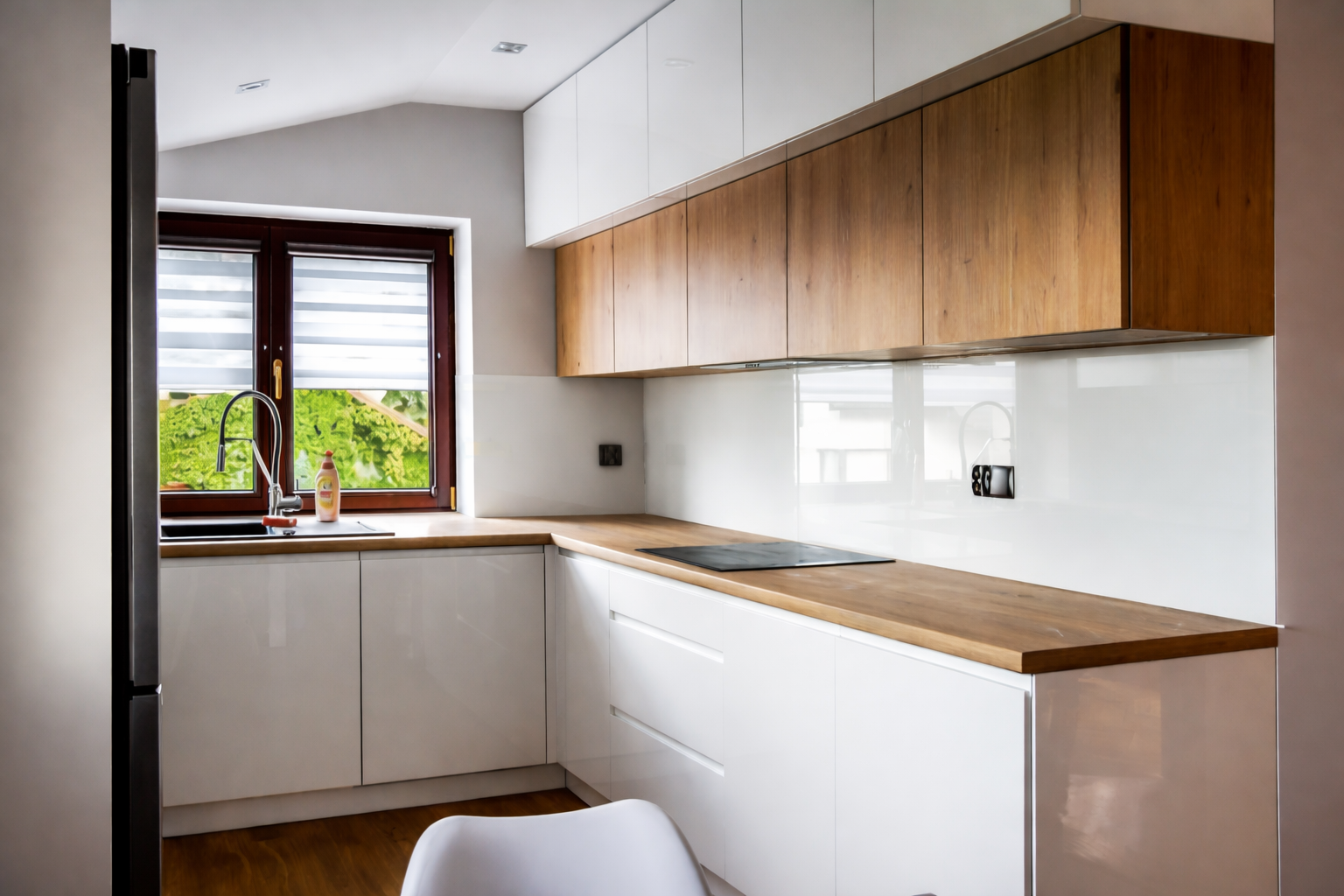 Do wstępnej wyceny wystarczą orientacyjne wymiary – np. długość i wysokość przestrzeni między blatem a szafkami. Nie muszą być co do milimetra – dokładny pomiar wykonamy my podczas wizyty. Ważne, aby pomiar poglądowy był zbliżony do rzeczywistego.